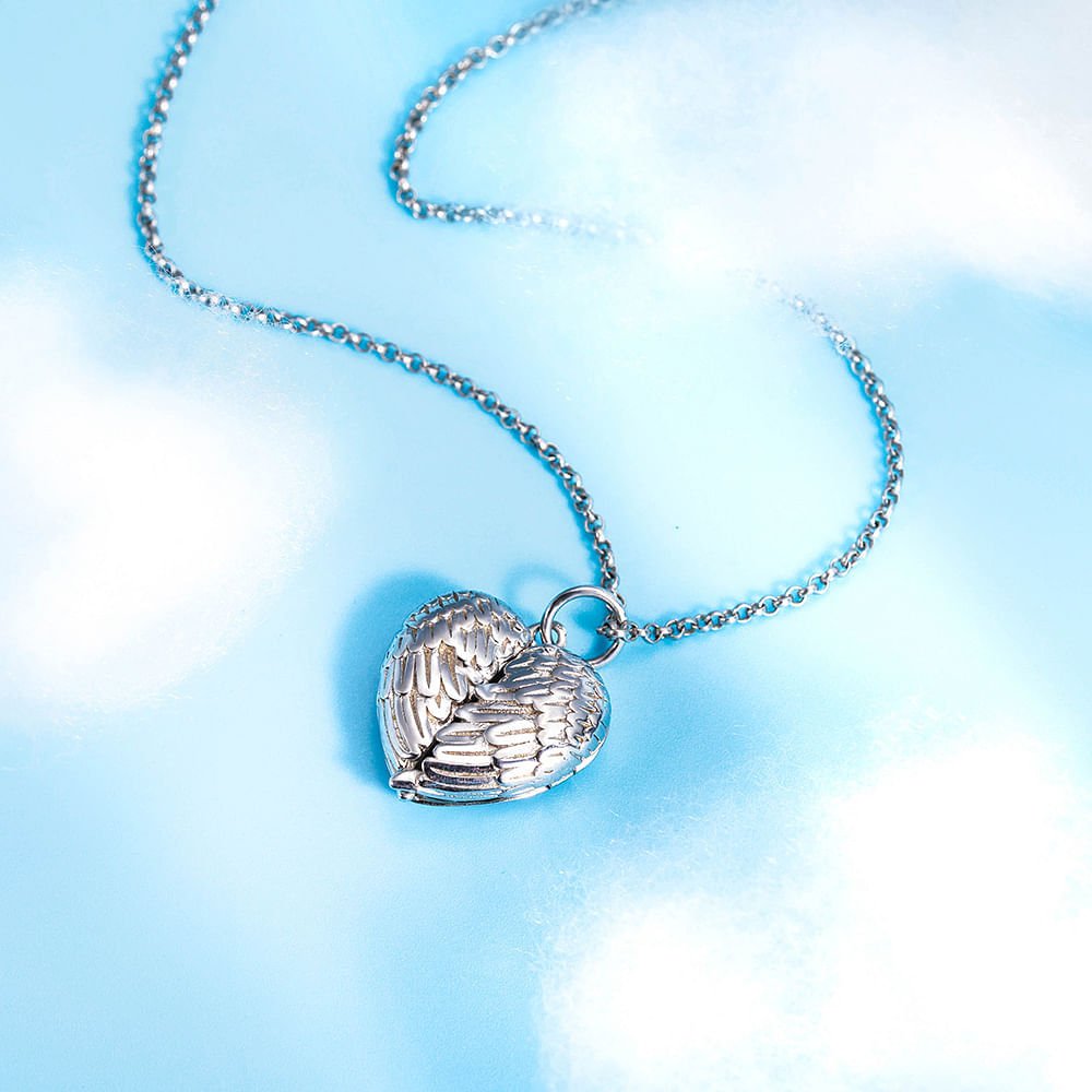 Personalized Angel Wing Heart Locket Necklace with Photo Engraved Text Anniversary Birthday Gift for Women Girls