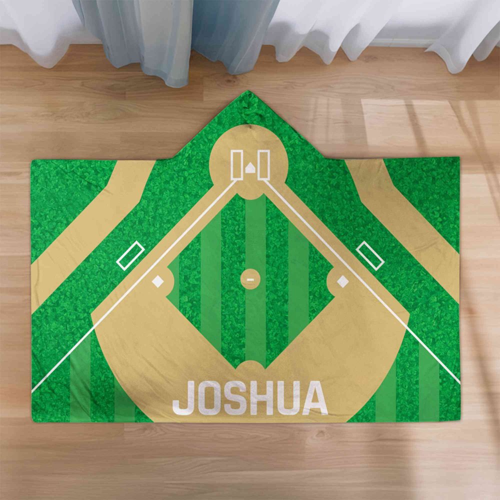 Personalized Baseball Basketball Ball Field Soft Hooded Blanket with Name Team Game Day Birthday Gift for Sports Lovers