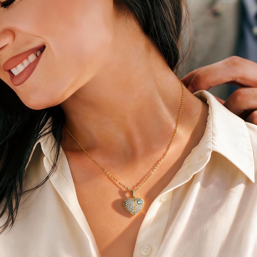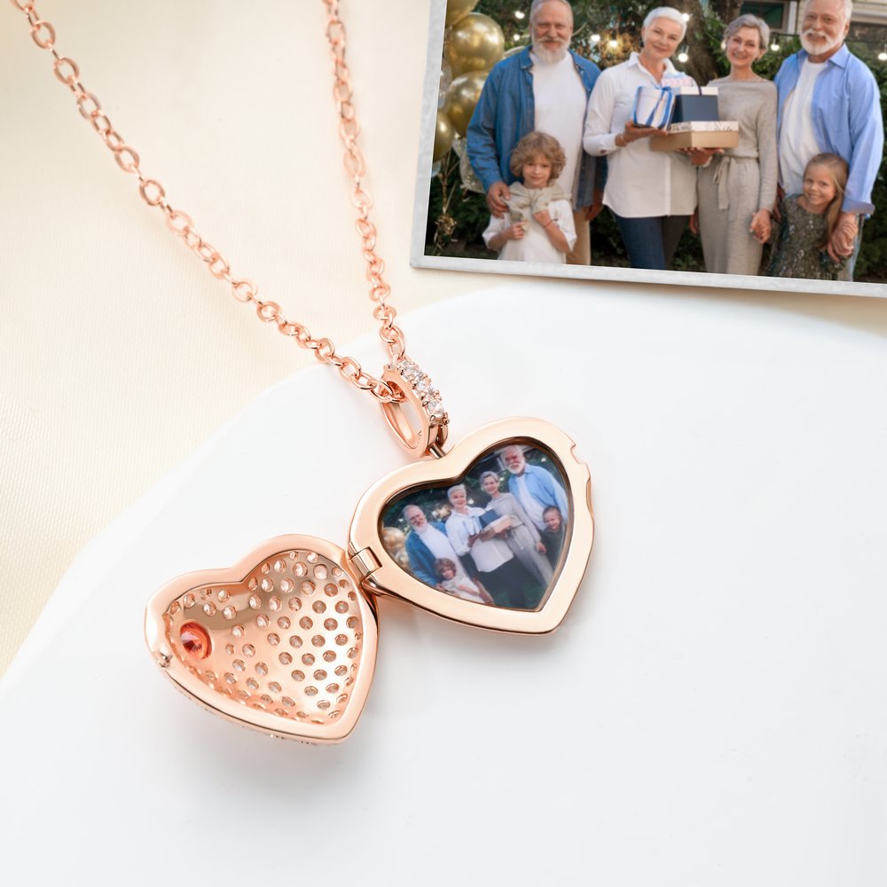 Customize this necklace to cherish your dearest moments by uploading a clear photo (couple, family, pet, etc.) to print inside the heart locket, pairing it with a birthstone (matched to your chosen month). The personalized details turn a simple locket into a tiny treasure that holds your most precious memories.
