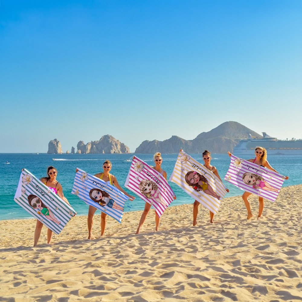 This eye-catching beach towel features a one-of-a-kind design that combines a custom character, your choice of birth flower, and a personalized name in cursive script. You can tailor the character’s skin tone, hairstyle, outfit, and accessories to match your look, while pairing it with your unique birth flower—turning a simple towel into a truly exclusive, statement-making accessory that reflects your personality and story.