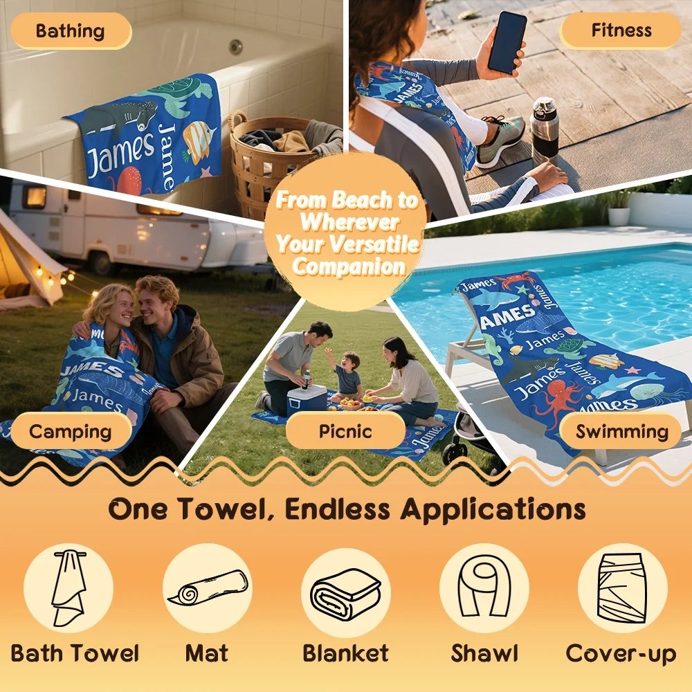 Designed for sunny summer days, this towel is ideal for beach trips, pool parties, lake vacations, and coastal getaways. Its large size provides ample coverage for lounging on the sand, while the lightweight foldable design makes it easy to pack in a beach bag or suitcase. Beyond the beach, it also works as a picnic blanket, travel wrap, or decorative throw, adding a playful, personalized touch to any outdoor or casual setting.