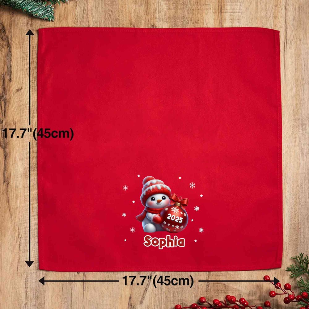 Personalized Christmas Snowman 100% Cotton Reusable Table Napkin with Name and Year Table Decor Christmas Gift for Family Friends
