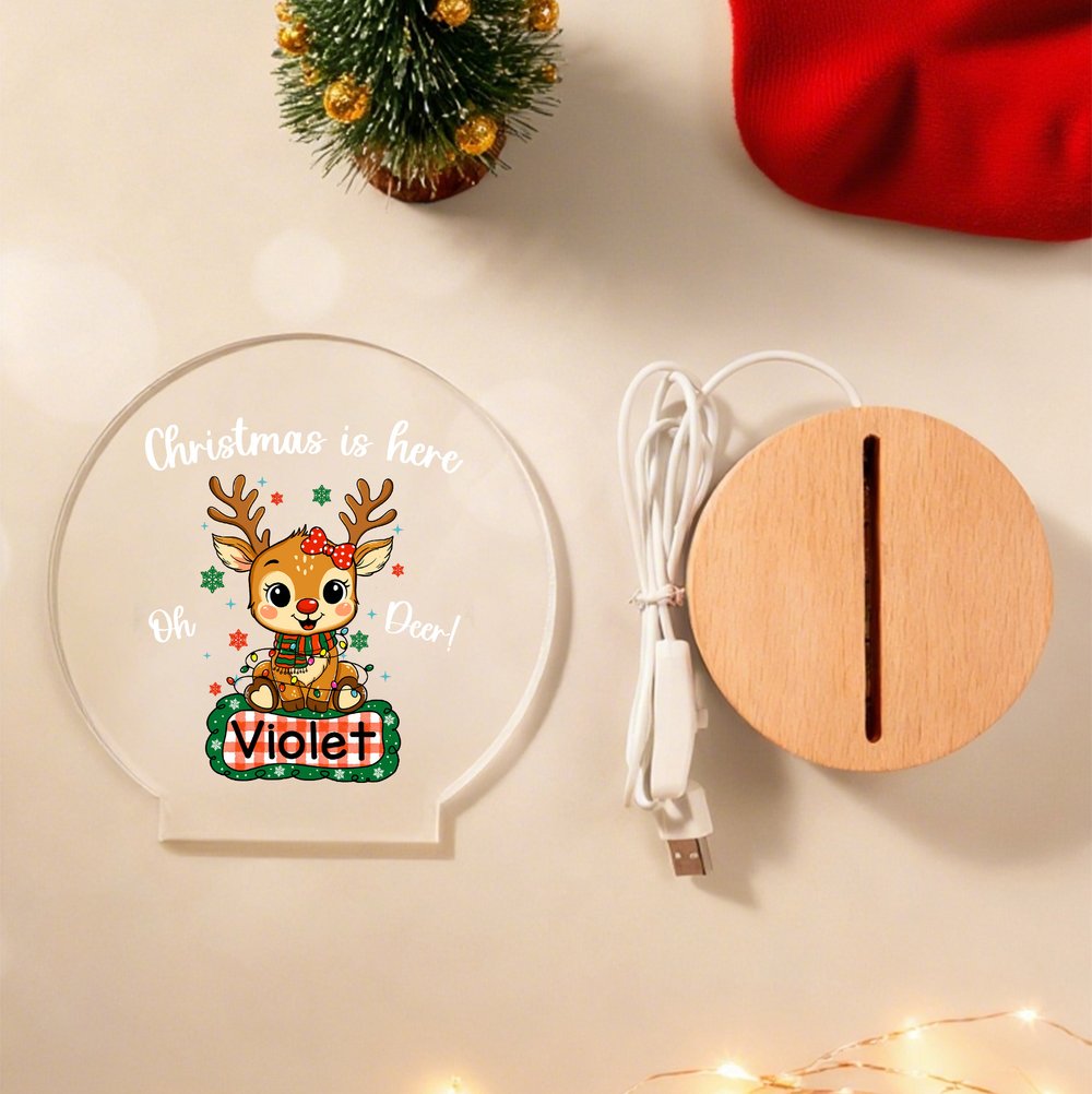 Feature: Non-Fading, LED Night Light, Name Customization, Christmas Deer Design
