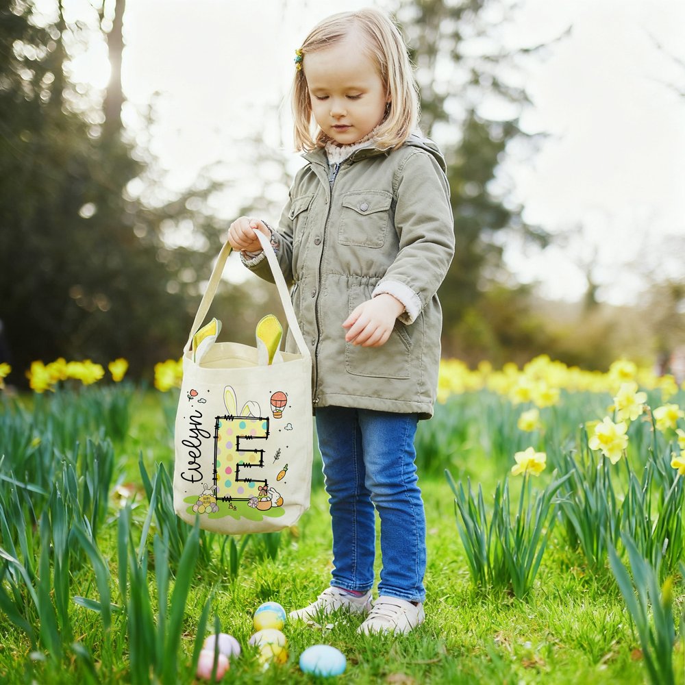 This Easter basket features adorable bunny ears as its standout design element, combined with playful Easter-themed letter patterns. It can be personalized with a child's name, creating a festive and unique gift that sparks joy. The lively design not only catches children’s eyes but also fills every use with the happiness and ceremony of Easter.