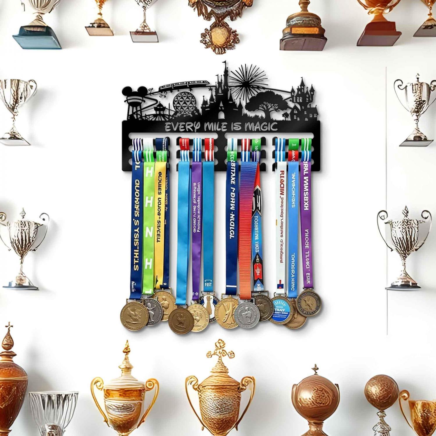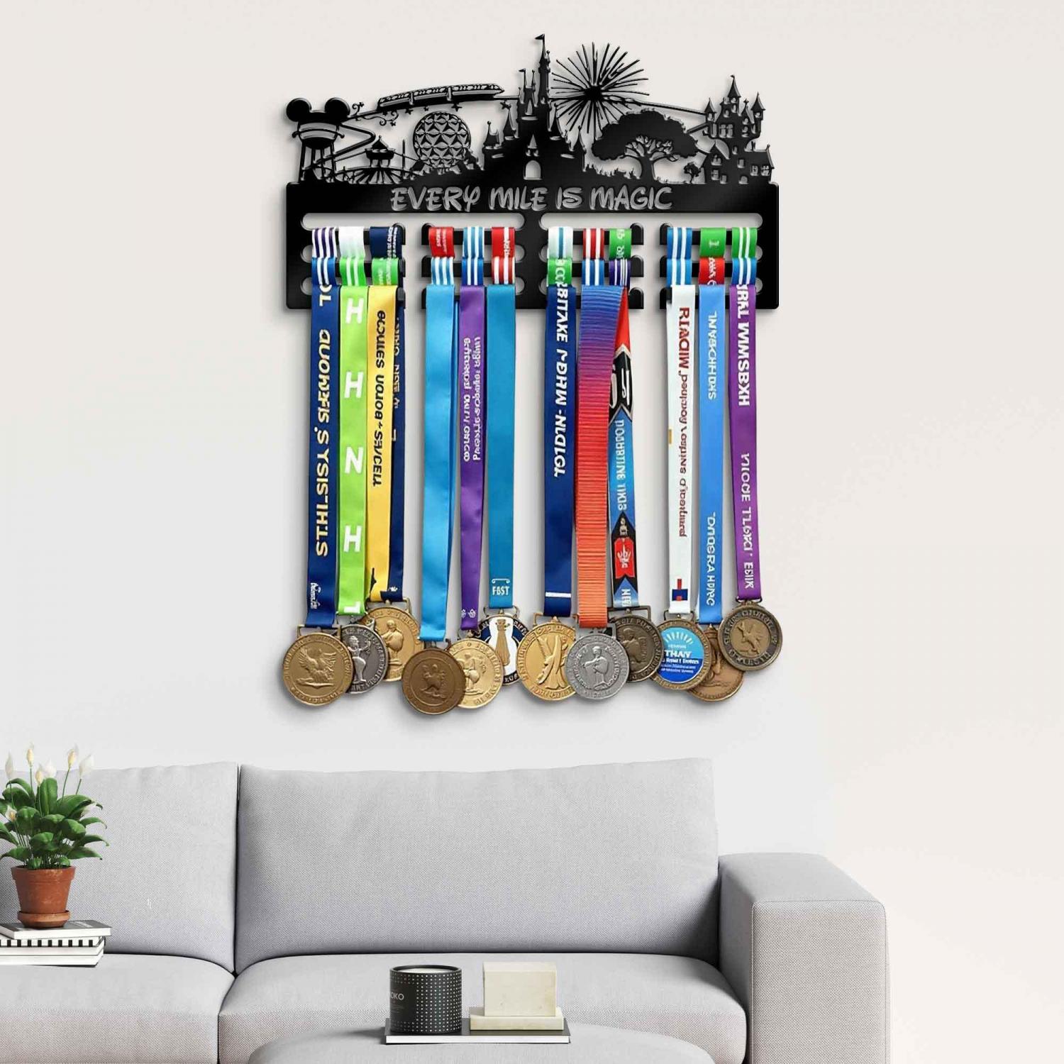 Celebrate your achievements with our custom medal hanger and trophy shelf display! Fabricated with thick, our medal and trophy holders are powder coated for a professional finished look. With an INTEGRATED SHELF, you can now display 60+ medals with one statement piece!