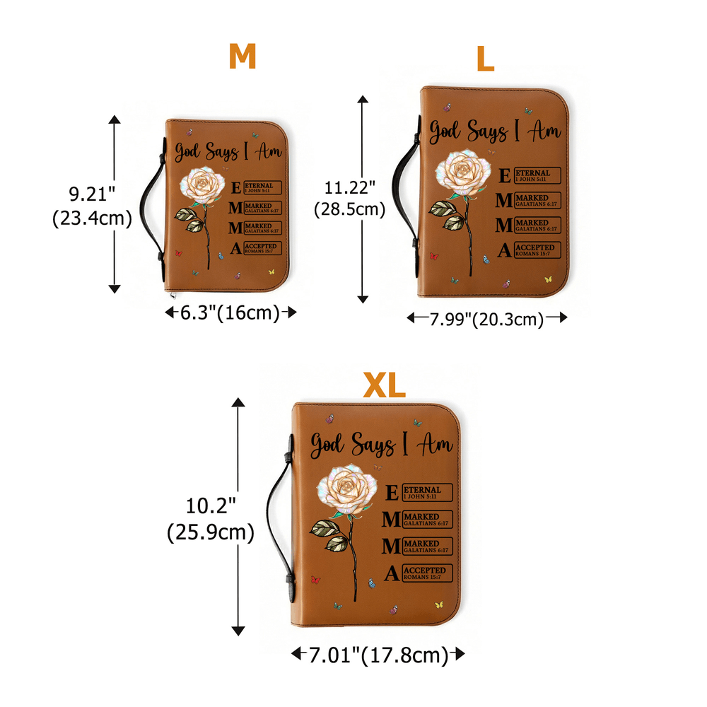 This Bible cover features delicate birth flowers as its focal design. Paired with the optional text “God Said I Am” or “God Said You Are”, it forms a powerful statement of faith. With a simple, elegant silhouette and personalized custom name, it expresses steadfast belief while carrying a deeply personal and commemorative touch.