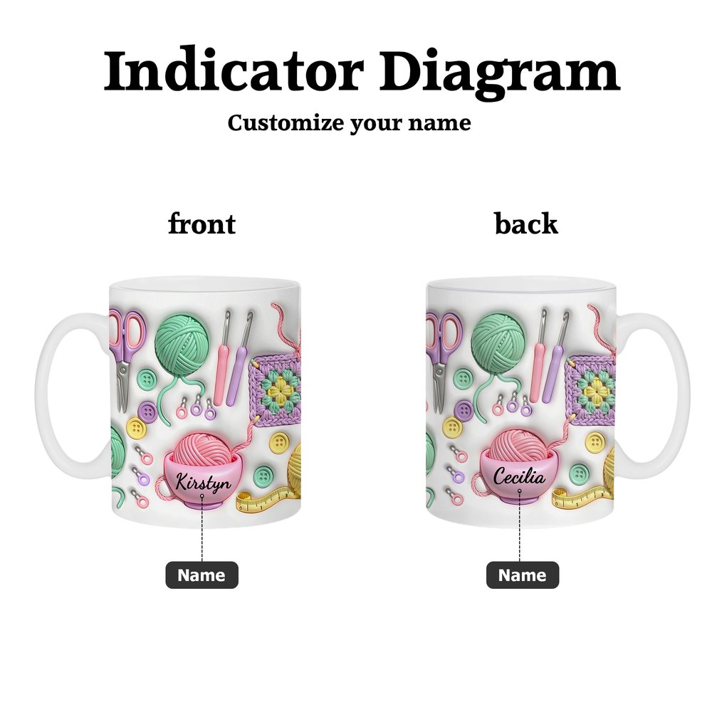 Crafted from high-quality, durable ceramic, this mug features a smooth glossy finish and a comfortable handle for everyday use. The knitting-inspired design includes adorable details like yarn balls, knitting needles all printed with fade-resistant ink. A custom name is beautifully displayed to make it uniquely hers. The matching coaster protects surfaces while completing the charming look. Both mug and coaster are dishwasher and microwave safe for everyday convenience.