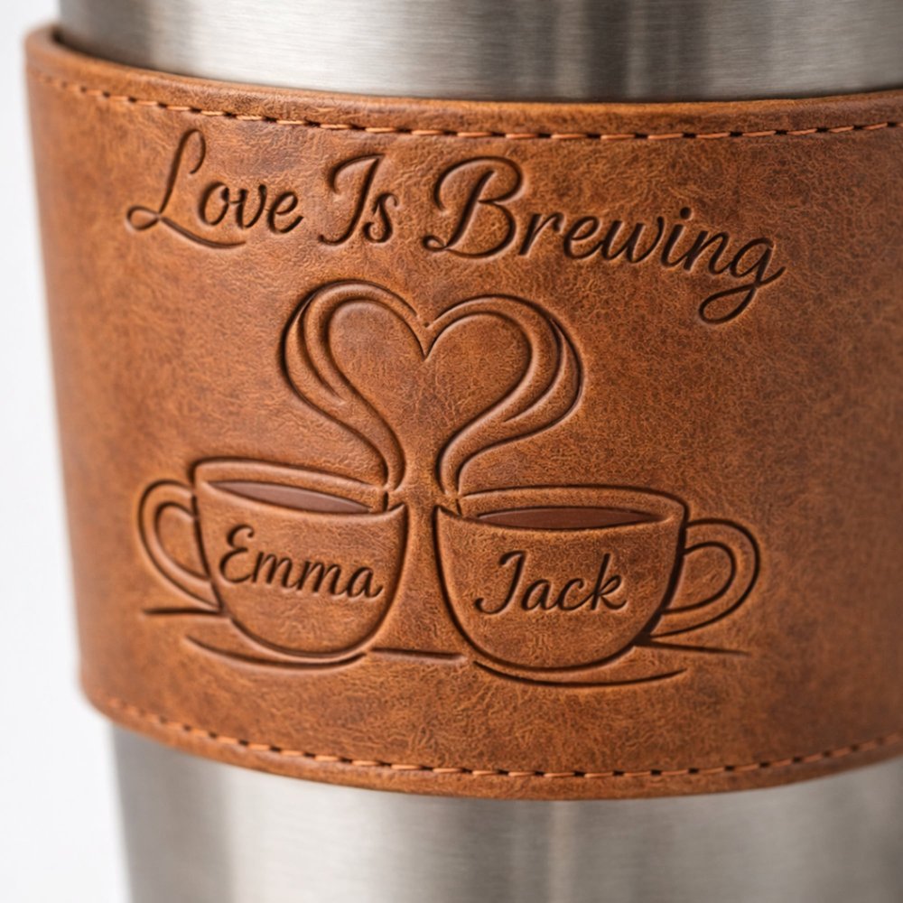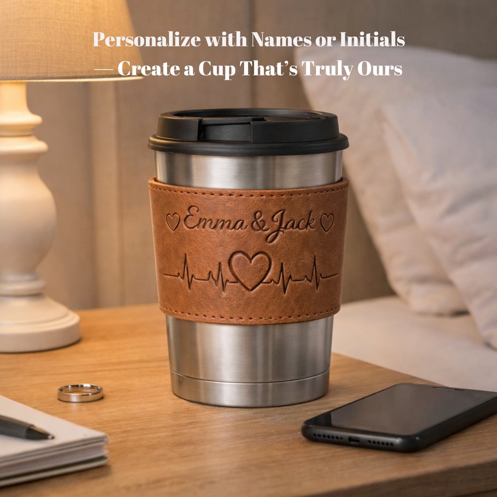 The cup sleeve supports customization with names or initials. Whether it's a full name or a simple combination of letters, you can create a unique design for yourself or your loved one. The embossed effect blends naturally with the leather texture, creating a classic and timeless look.