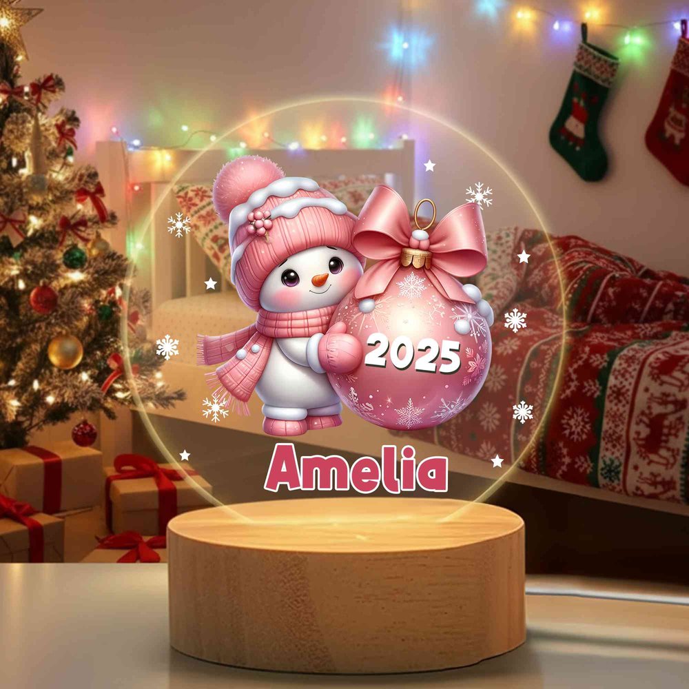 Feature: Non-Fading, LED Light, Cute Snowman Design, Name & Year Customization