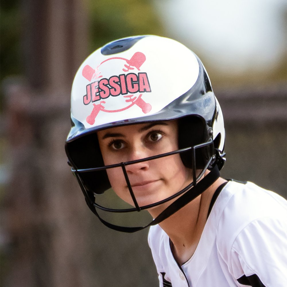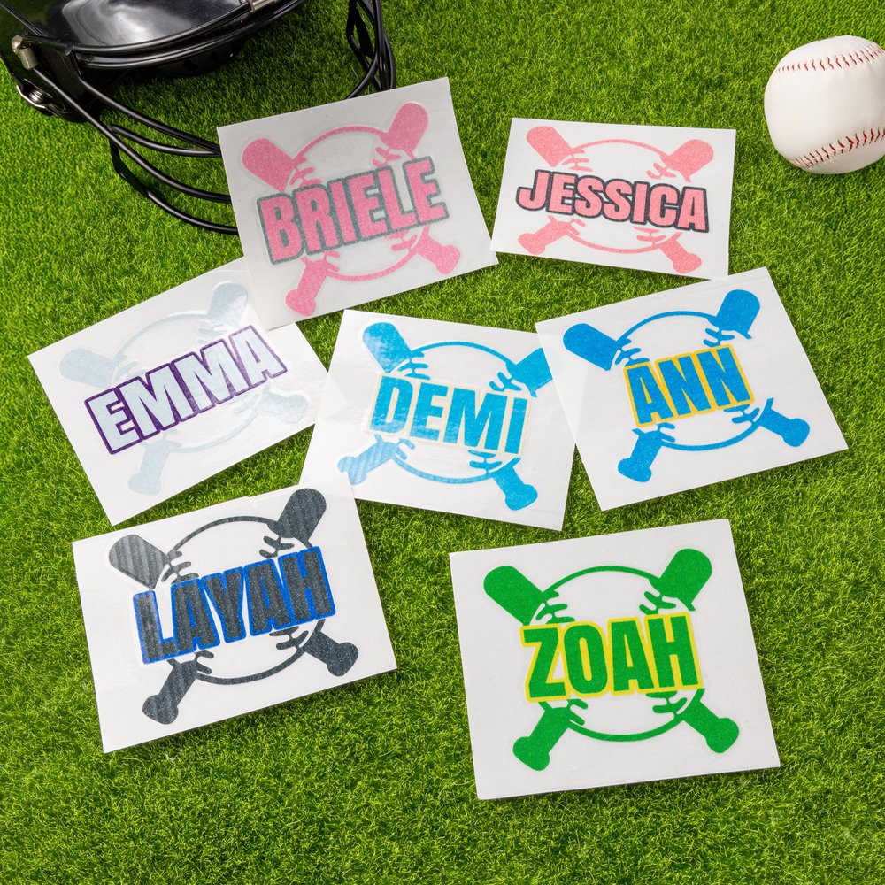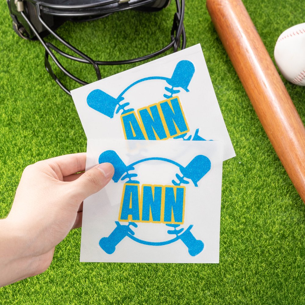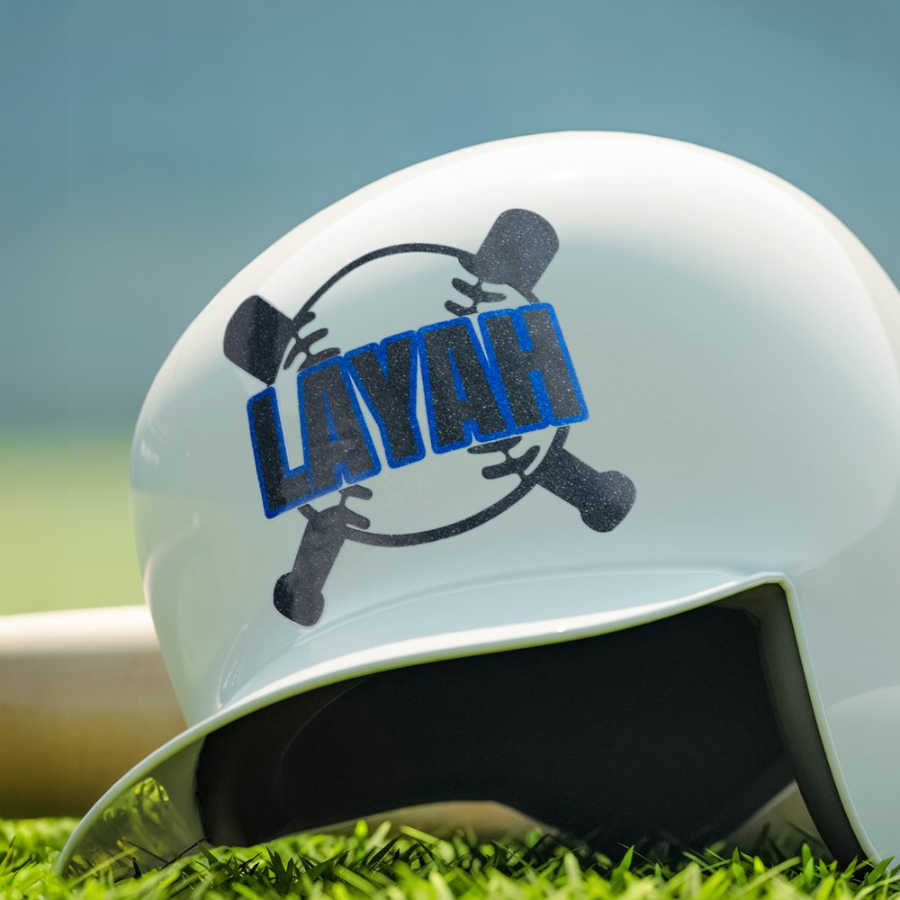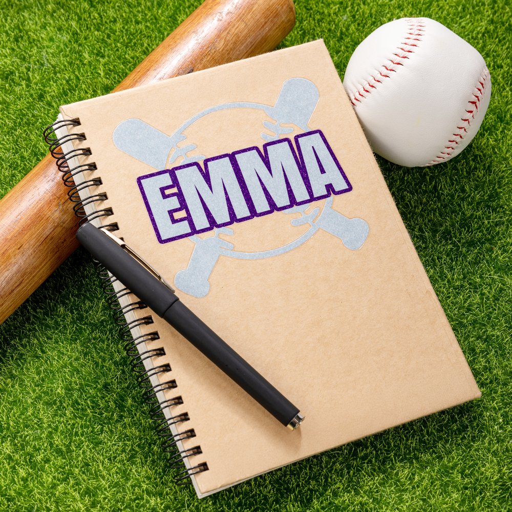This sticker features a baseball and bat crossed as the background pattern, full of sports vitality, symbolizing the passion and power of baseball. The sticker is prominently printed with a customizable name to meet personalized needs, allowing you to have an exclusive logo. At the same time, a variety of bright glitter color options can match the colors of different teams to fully demonstrate the team's characteristics.