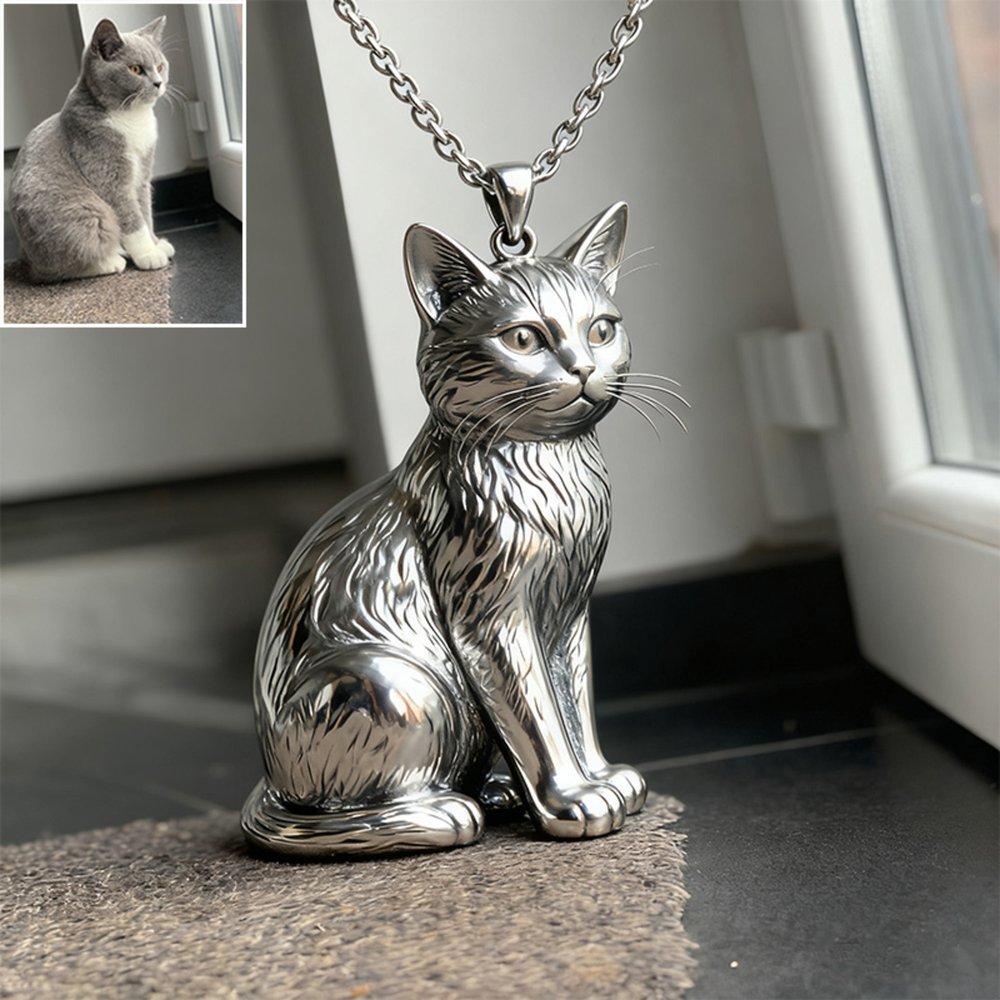 This Personalized Pet Photo Necklace features a custom 3D metal sculpture pendant of your beloved pet, capturing their spirit in exquisite detail. Whether it's a dog or a cat, this necklace is a heartfelt tribute that celebrates the bond you share with your furry companion.