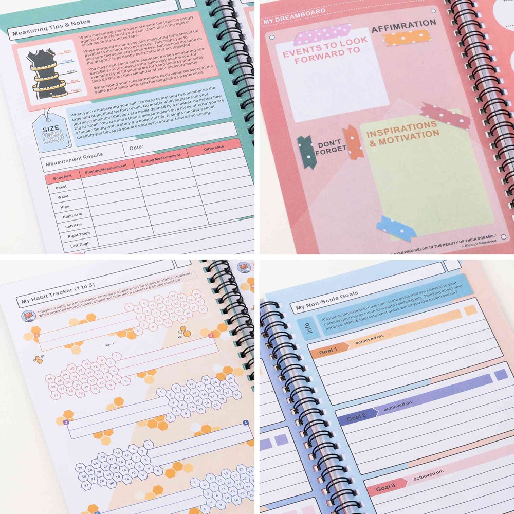 Crafted from sturdy paper, this journal balances durability and portability. It’s lightweight enough to toss in a gym bag, while the thick paper resists ink bleed, ideal for daily logging. The spiral binding lets it lie flat for easy writing, ensuring a smooth, frustration-free planning experience.