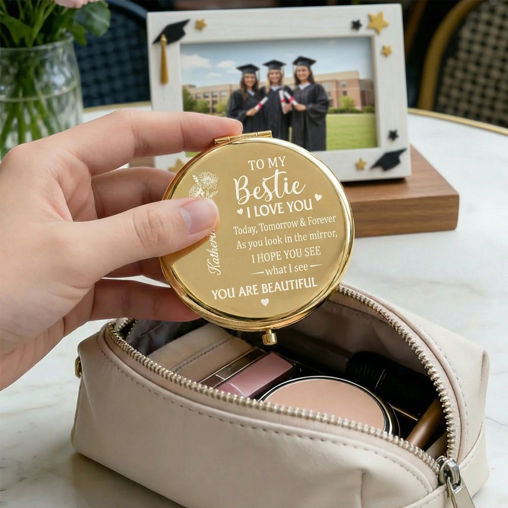 Every detail of this makeup mirror is imbued with tenderness and love. Heartwarming text adorned with small hearts conveys unwavering love and encouragement. You can customize a title—the person you want to give this gift to, paired with a birth flower and name, enhancing the sense of exclusivity and commemorative significance.
